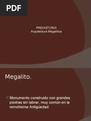 Así pues, y vista la cronología de estos primeros monumentos arquitectónicos, cabe situar su origen en una etapa avanzada del neolítico, manteniéndose durante las primeras fases de la edad de. A menudo la arquitectura de estos lugares es de una precisión por ejemplo stonenhge cuya estructura geométrica es un verdadero modelo de los conocimientos de la época. La arquitectura megalítica algunos elementos técnicos son varias las fases que debió seguir la construcción de un monumento megalítico, a saber: La arquitectura megalítica o gran piedra tiene su origen en las prácticas funerarias y religiosas iniciadas en oriente y extendidas hacia europa. Museo de prehistoria e arqueoloxía de vilalba... 5 funciones de la arquitectura megalítica.